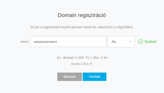Ha sikerült kiválasztani a neked megfelelő (és szabad) domain címet, akkor már csak a számlázási adataidat kell megadnod, és készen is vagy.